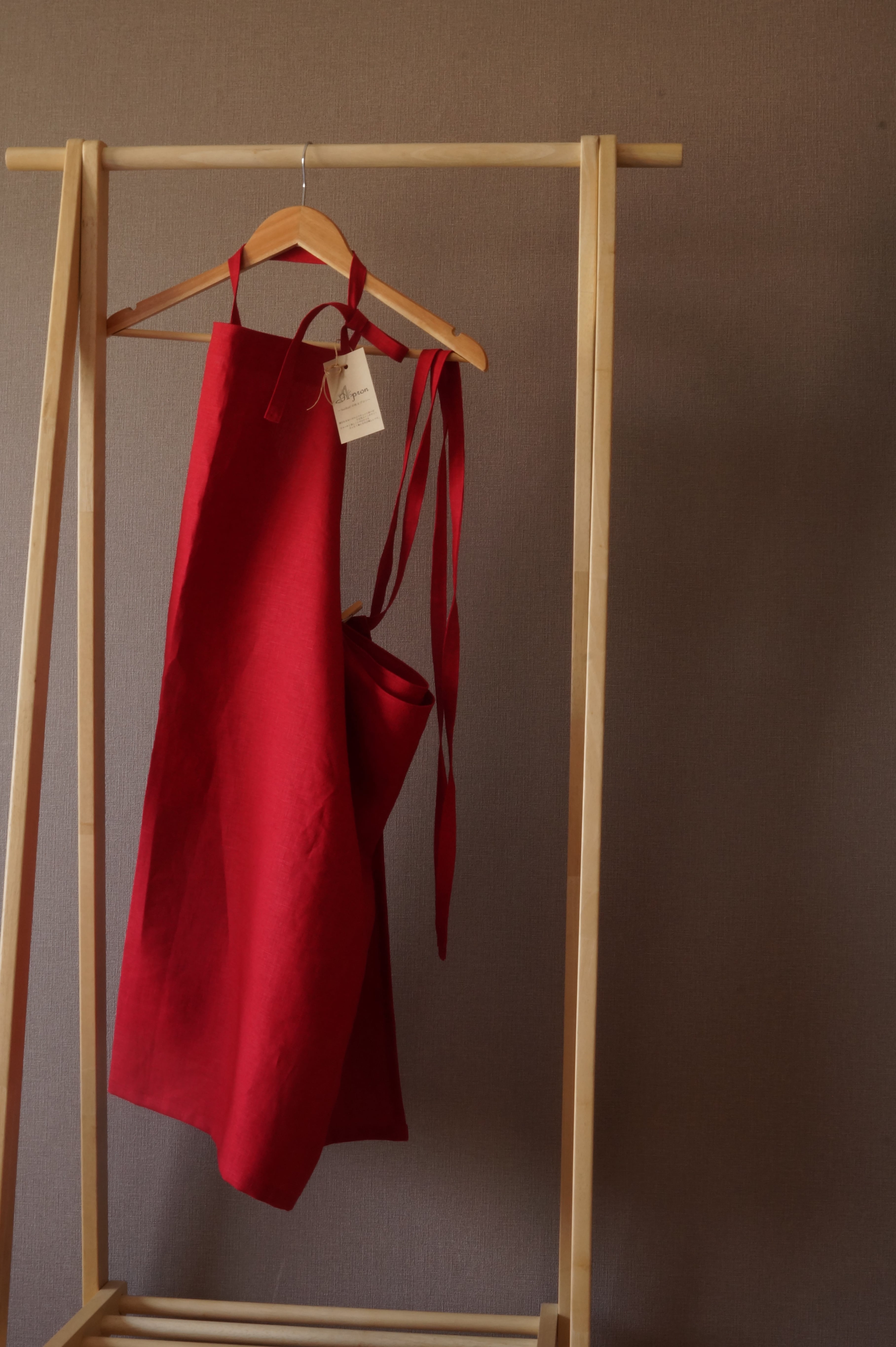 赤いリネンエプロン